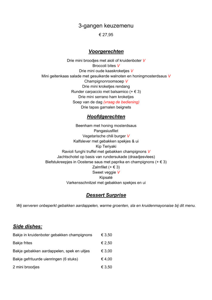 Of uw voorkeur nu uitgaat naar een sappig vleesgerecht, een smaakvol visgerecht of een verrassend vegetarisch alternatief, onze uitgebreide menukaart biedt voor elk wat wils.